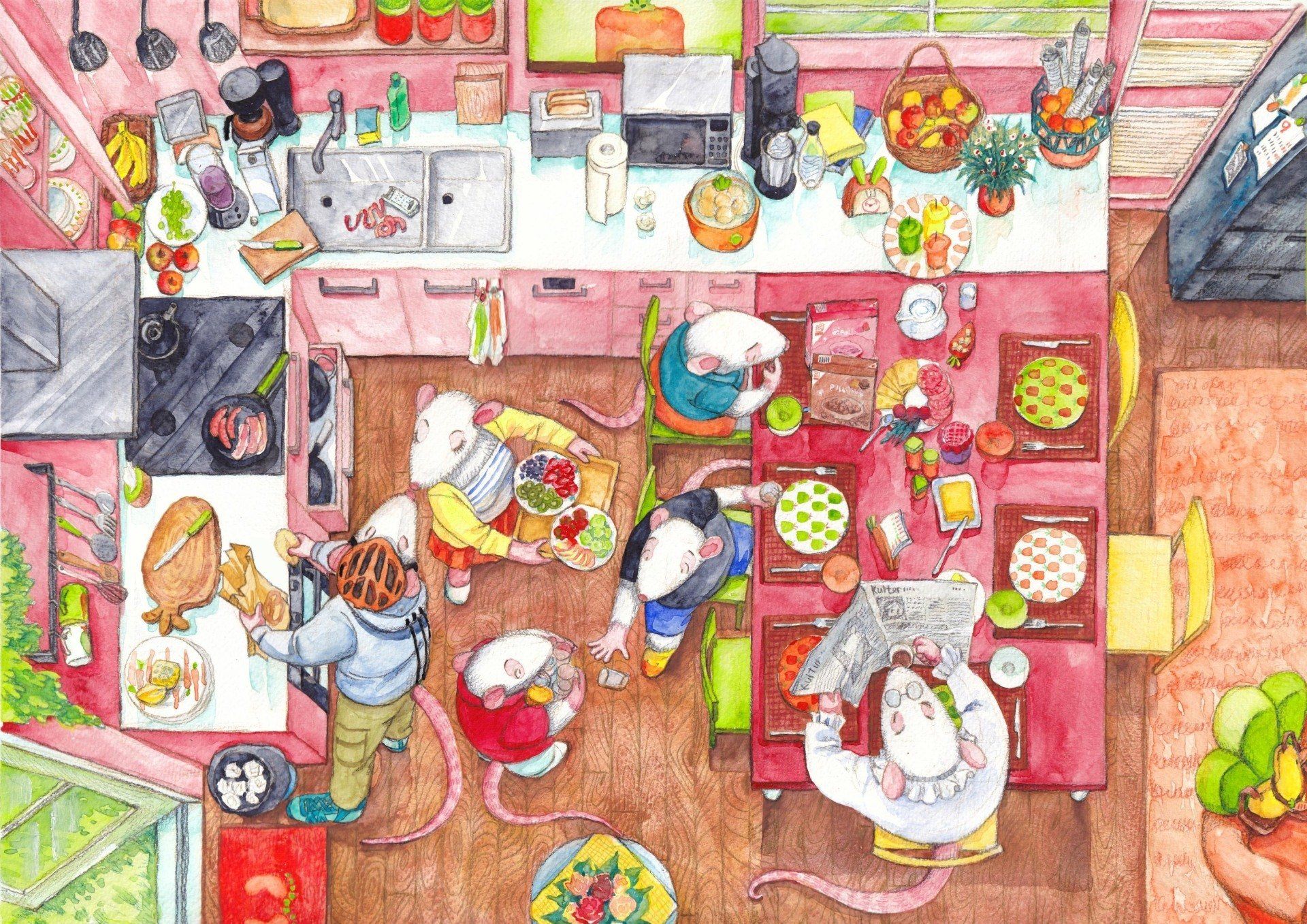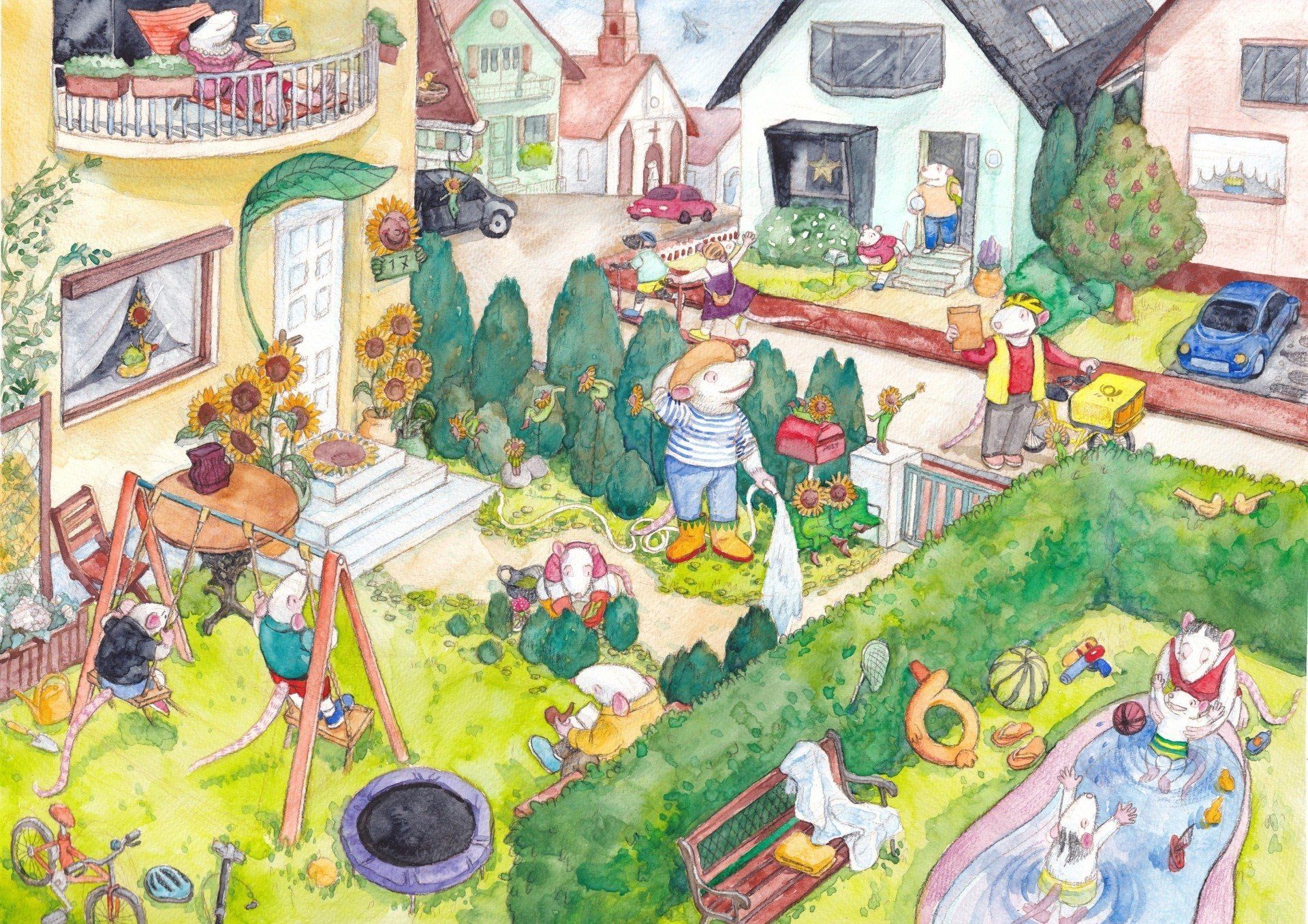 Gerne zeichne ich Tiere, besonders Ratten in meinen Wimmelbildern, die für Kinder von 4 bis 6 Jahre geeignet sind.